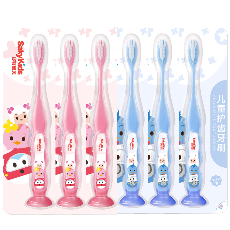 Showkang children's toothbrush 2 - 3 to 6 years old soft hair brush - and - gum - proof children's suction dish