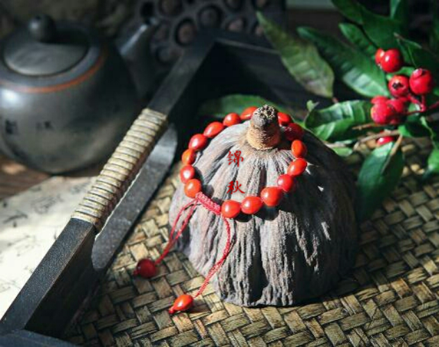 "Easy acacia" natural acacia bean red rope bracelet Year of life transfer beads diamond knot rope