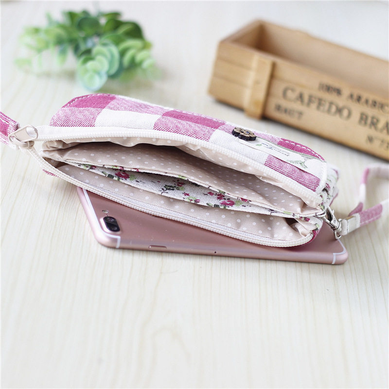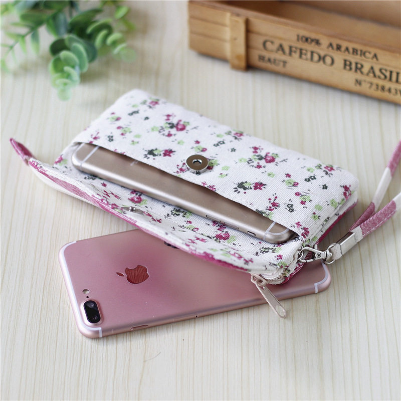 Fabric clutch bag 6 inch large screen mobile phone bag sweet and fresh cotton girl hand carrying floral lace small cloth bag