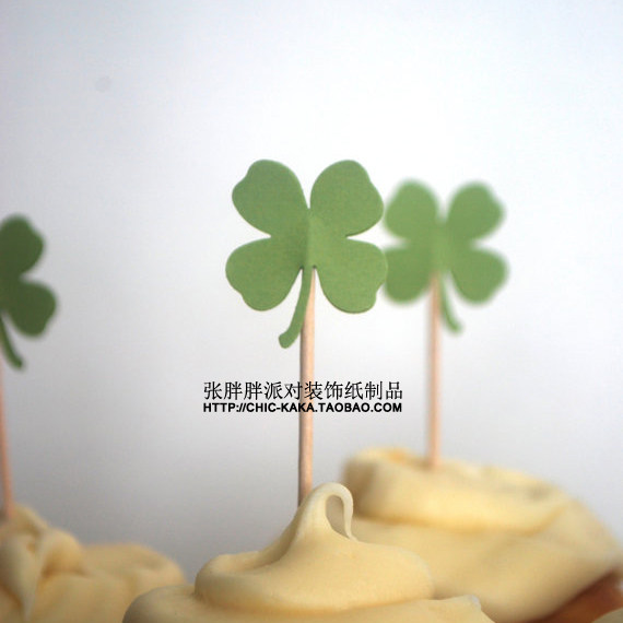 Four-leafed grass green cake inserts decorated with inserts for food inserts-Taobao