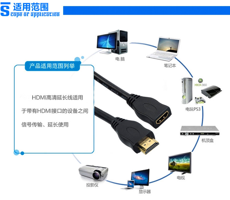 Mobile phone simultaneous screen lengthening standard HDMI A HDMI interface extension line for the mother to mother extended HDMI line