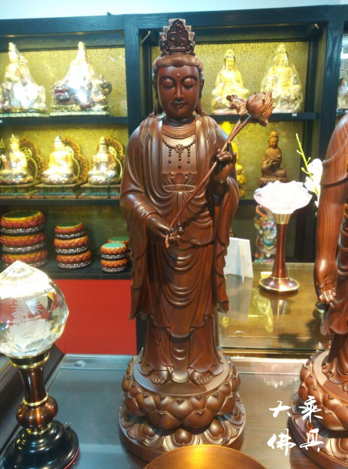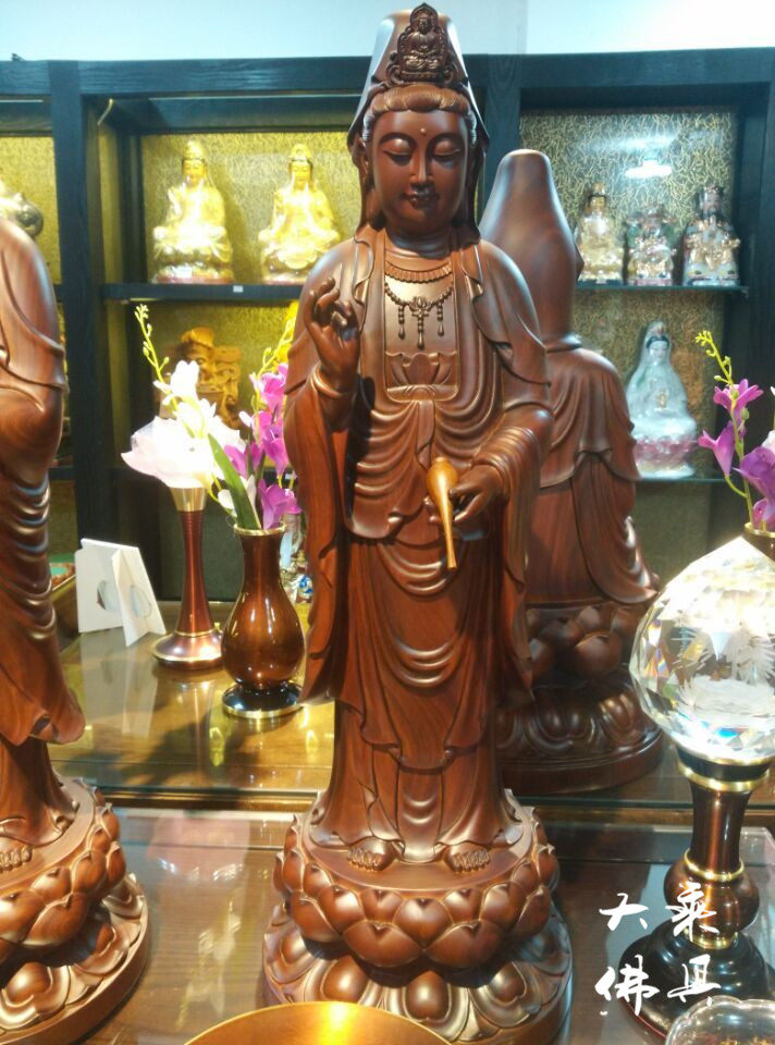 Taiwan green sandalwood 24-inch Western three holy statue Wood carving Buddha Amitabha Buddha Guanshiyin Bodhisattva