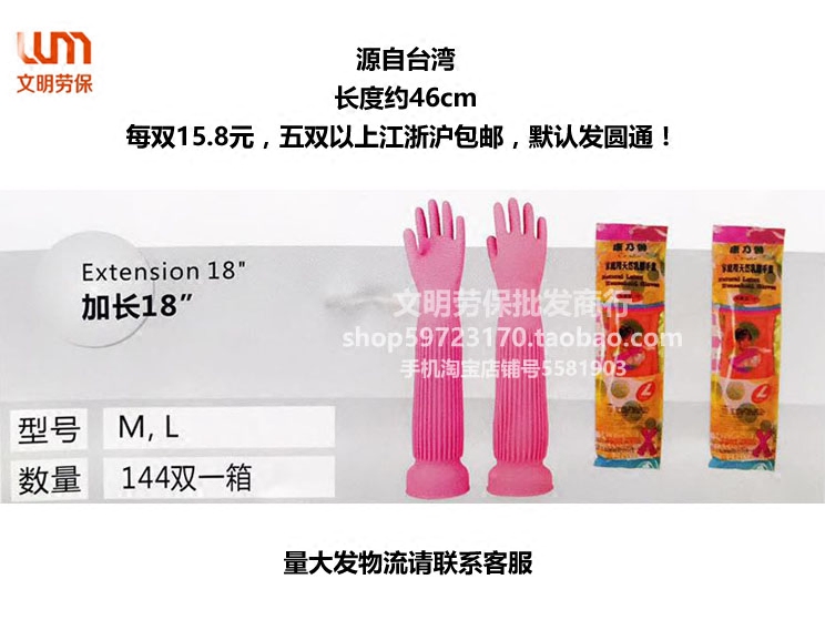 Taiwan Carnation 18 "46CM Longer 580 Ultra Long 5cm Household Latex Gloves