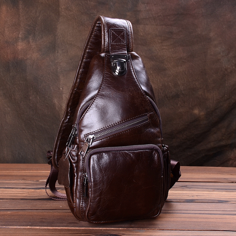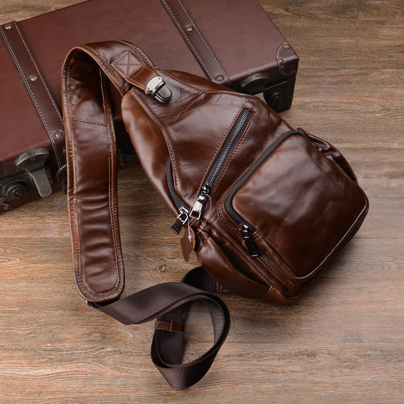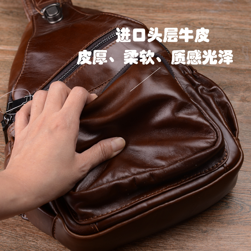 Xuanmashi first layer cowhide men's chest bag leather shoulder bag men's backpack trend casual cross-body bag men's bag