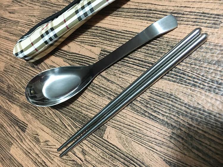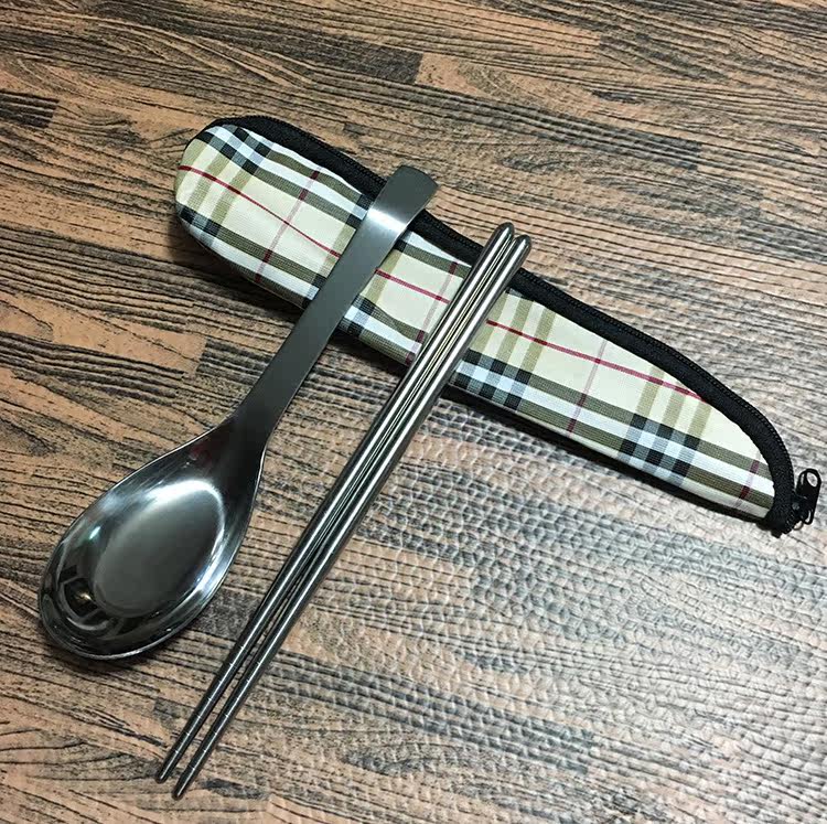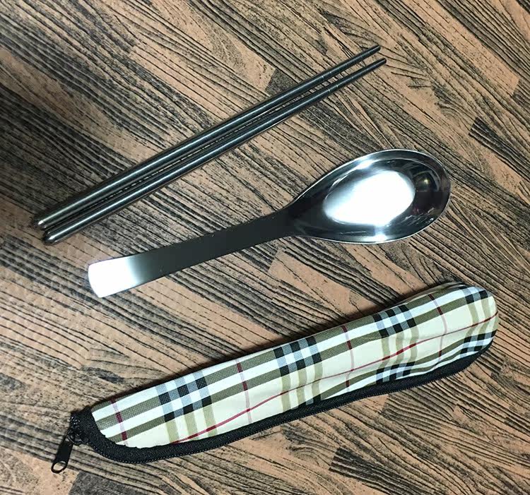 Stainless steel quality portable spoon chopstick outdoor work travel chopstick spoon environmentally-friendly cutlery waterproof canvas bag suit