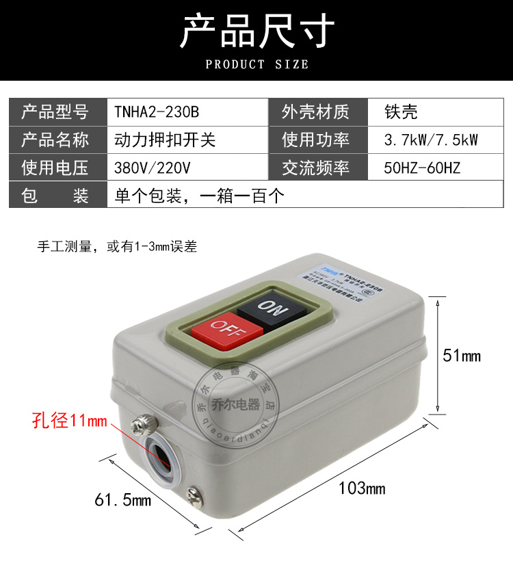 Tianhua switch button three-phase switch BS230B BS216B 211B 380V220V power buckle switch