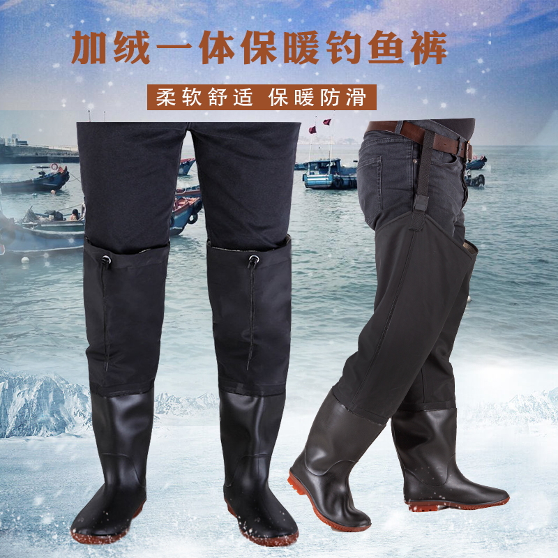 Winter knee-high waist plus velvet water pants thickened and warm one waterproof rain boots fishing fishing car wash water shoes