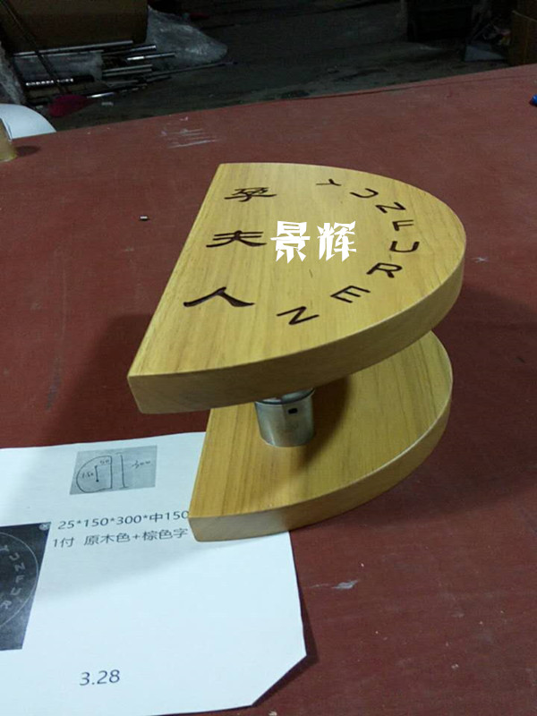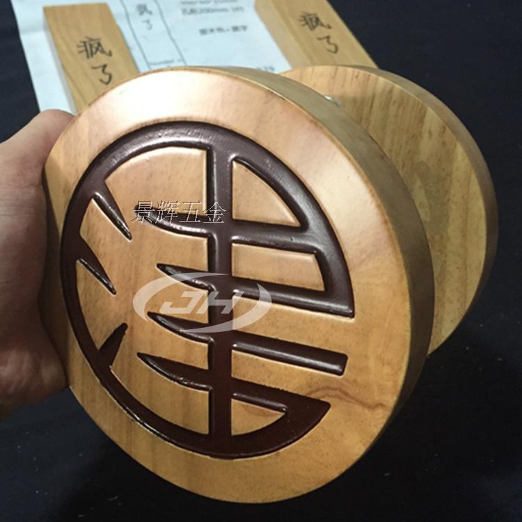 Solid wood door handle Wooden glass door handle Square semi-circular log carving hand-made logo