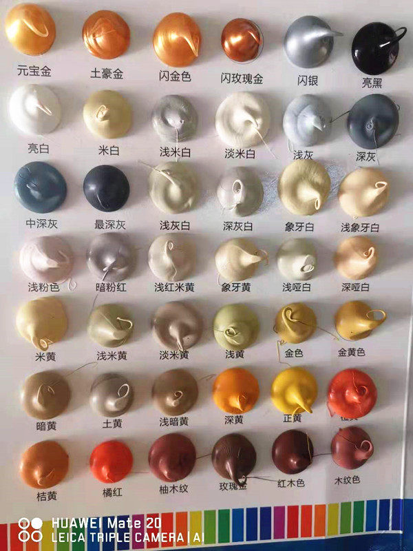 Teak wood grain Color Dark yellow Light beige Ivory White Light matte White Light matte white Rice white Coffee Light coffee Bronze Green fruit green Telecom blue Red brown Mahogany Red Red Green Grass green Dark gray Medium dark Gray Flash Silver Dollar treasure Gold