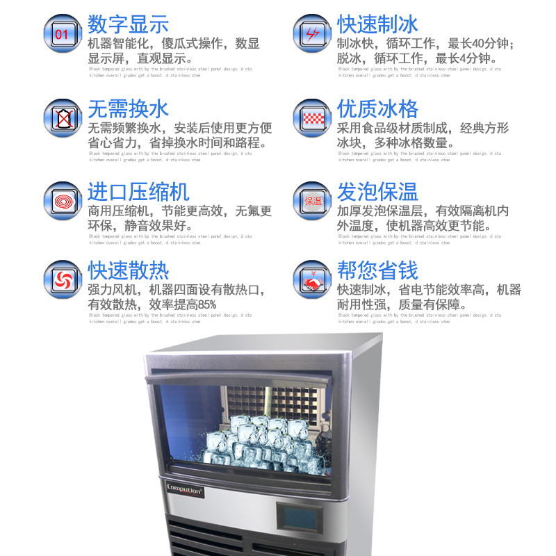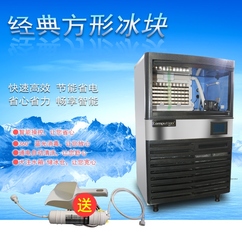 Commercial ice maker's milk tea shop fully automatic large ice block machine KTV Bar square ice cubes making big small packs