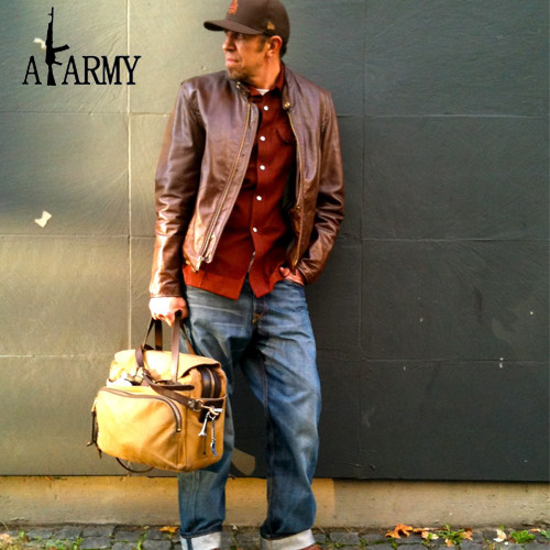 AKARMY heavy canvas bag men's handbag Europe and the United States shoulder oblique cross-bag large capacity horizontal casual computer bag