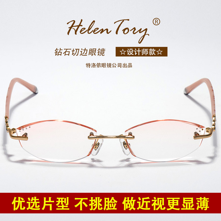 Frame-free diamond cut edge Nearsightedness Glasses glasses Tea Color 1 61 aspherical suitable for high number of matching mirror women