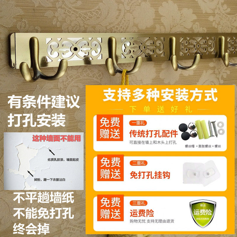 Punch-free stainless steel wall hanging clothes hook rack bathroom European style bathroom door rear large coat hook wardrobe row hook