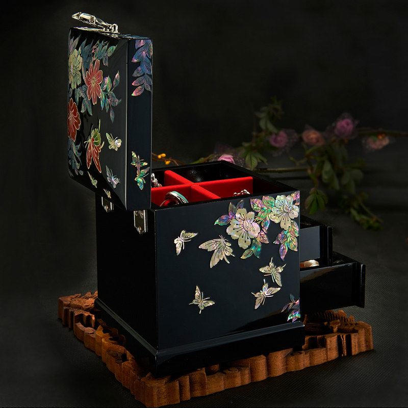 E-014 red jewellery containing box wood red E-014 black first decorated case black E-015 large retro first decorated case multilayer