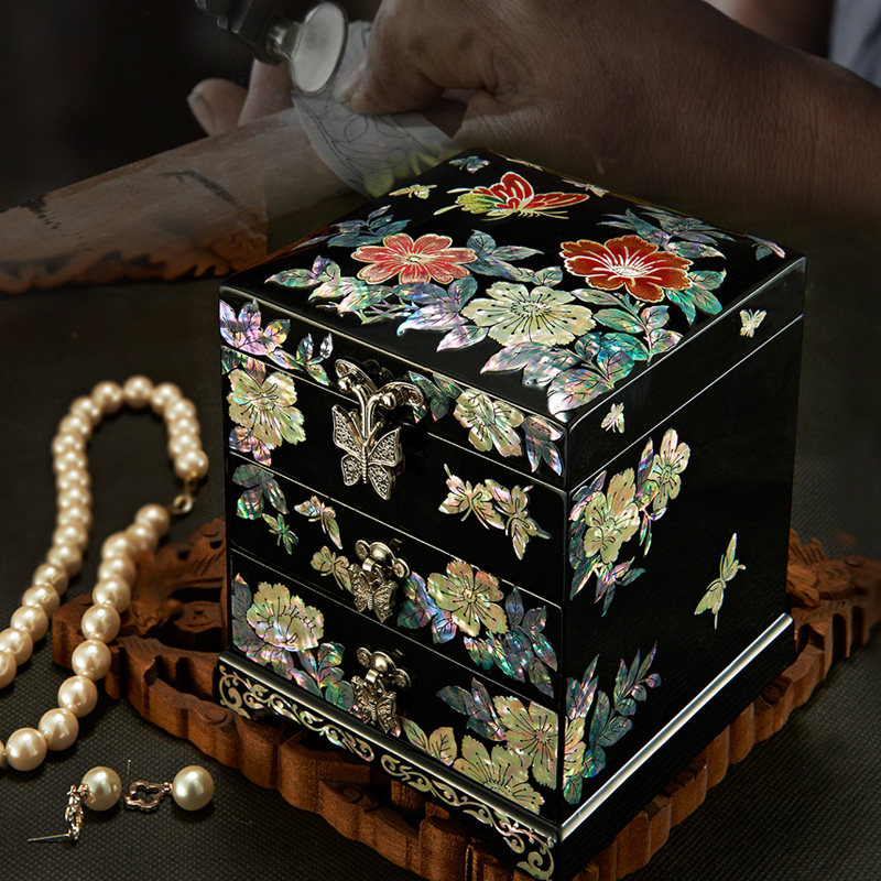 Brocade Legend Snail Platinum Lacquered solid wood Jewelry Wedding first Jewelry Box O-style Ornament Box Multilayer Wedding Gifts