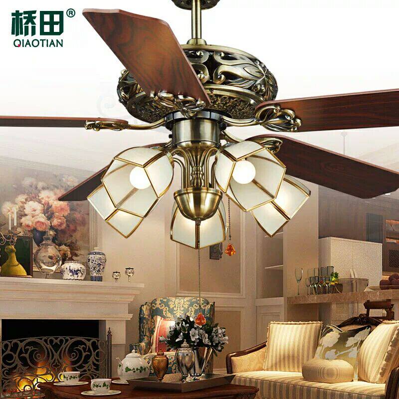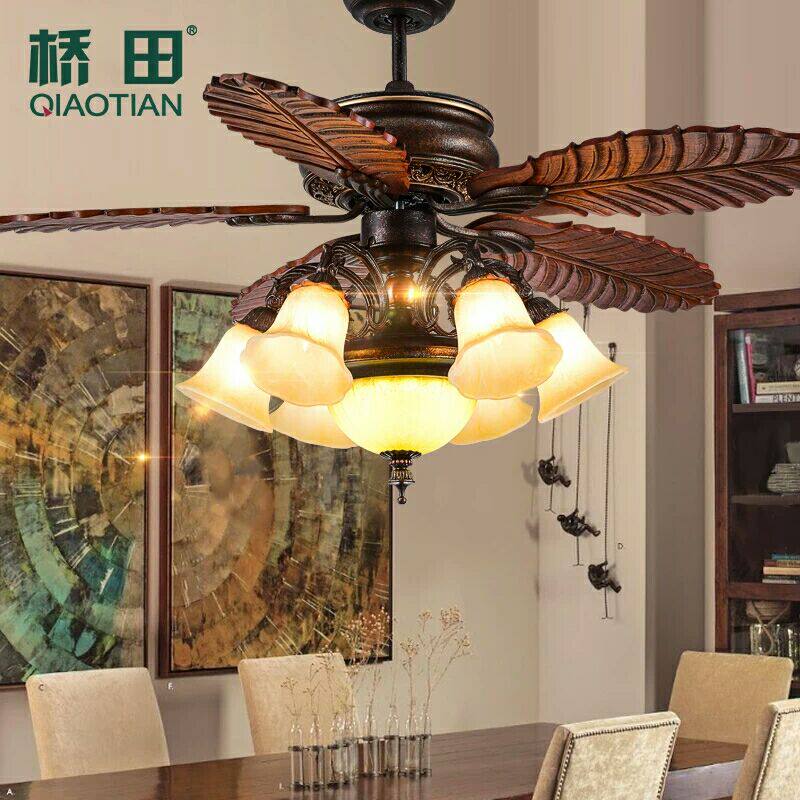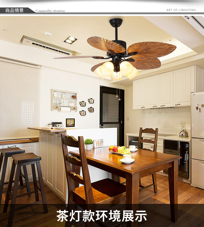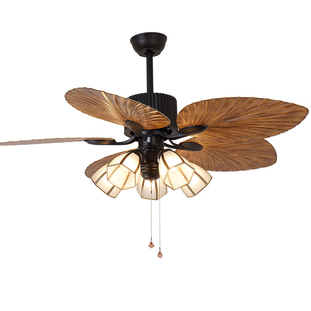 Five leaves and five lights with LED light source Remote control five leaves and seven lights with LED light source Remote control 52-inch wooden leaf copper edge lampshade wall control 2 fires 10 52 inch wooden leaf copper edge lampshade remote control 52 inch wooden leaf copper edge lamp