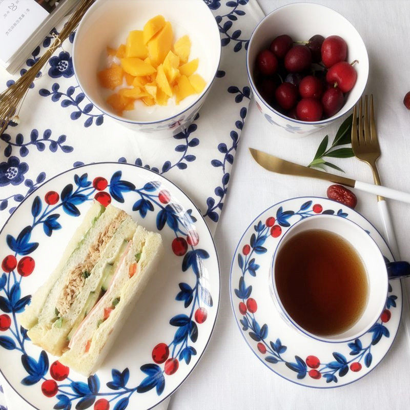 Romantic Breeze Berries Creative Breakfast Plates Plates Home Western Plates Tableware Rice Bowls Coffee Cups Saucers