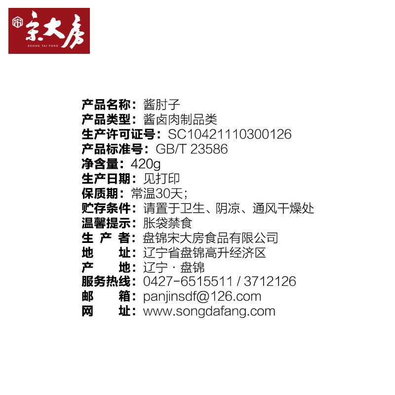 Song Dafang Boneless Pork Knuckle 420g Fresh Hoofed Meat Vacuum Braised Northeast Cooked Snacks