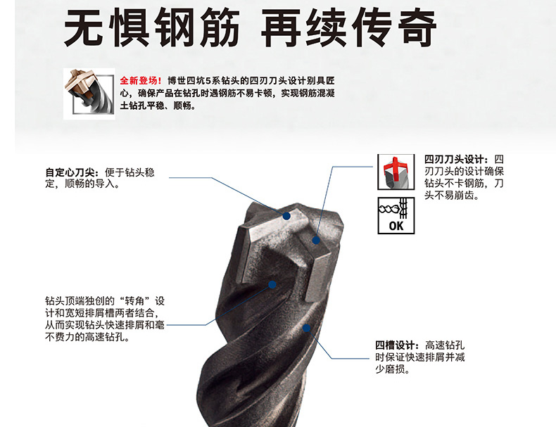 Bosch new 5-series drill bit round handle 2 pit 2 groove four-pit four-edge electric hammer drill bit 4-16mm reinforced concrete