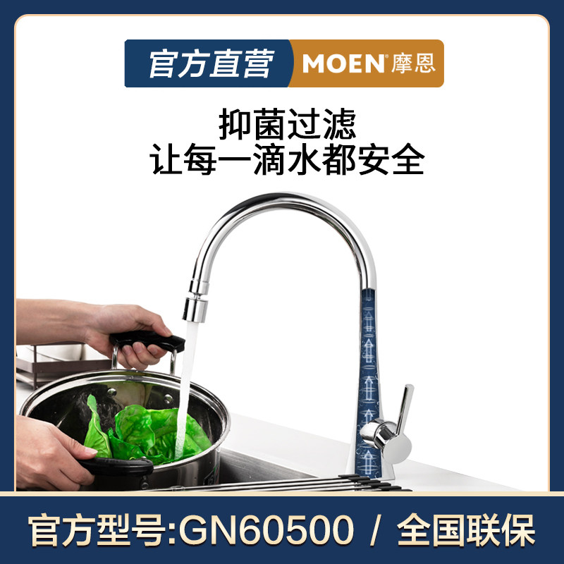 Moen kitchen faucet rotating high-throwing hot and cold water dishwashing basin copper household splash-proof 60500 70111