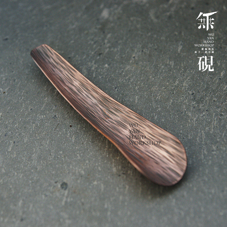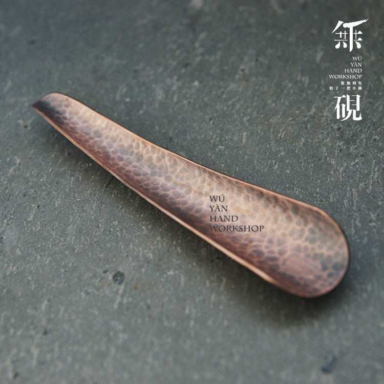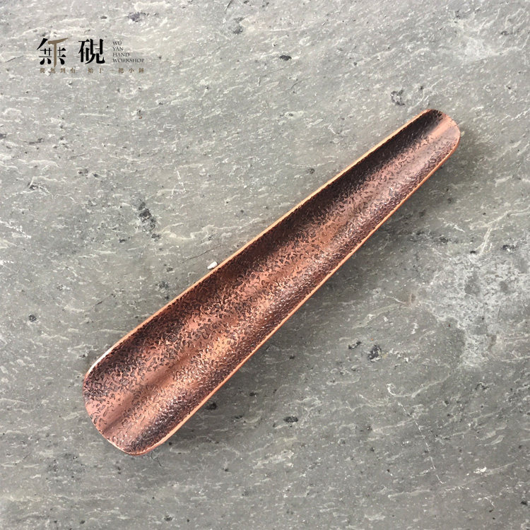No inkstone pure handmade copper teaspoon teaspoon teaspoon tea is Yunnan folk art made willow leaf pattern pure copper red copper tea set