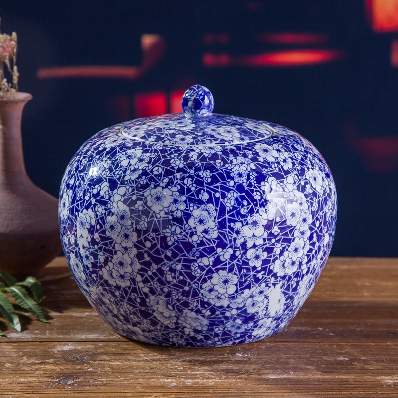Jingdezhen blue-and-white ceramic seasoning jar traditional Chinese medicine loaded medicine paste square jar sealed jar storage with lid jar 10 catties