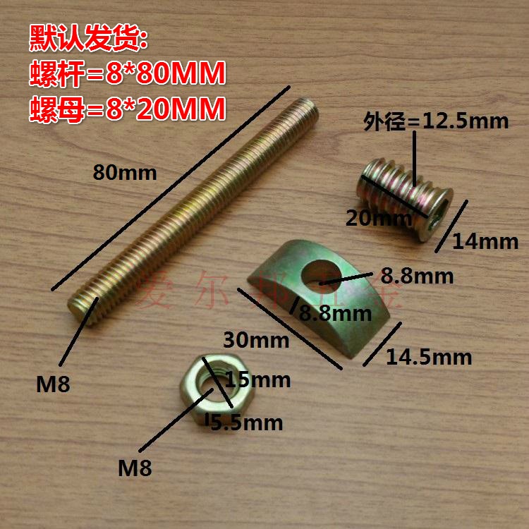 Special price Crescent Moon Tooth Four Conjoint Piece Furniture Hardware Screw Rod Large Class Table Face Assembly M8 * 80mm-Taobao