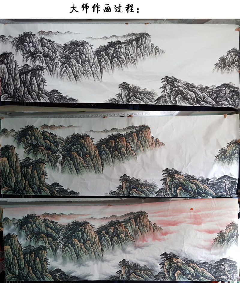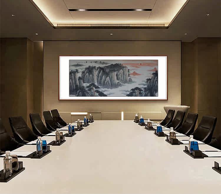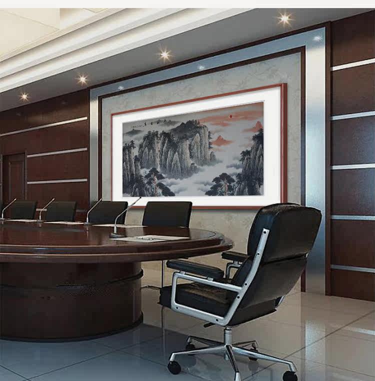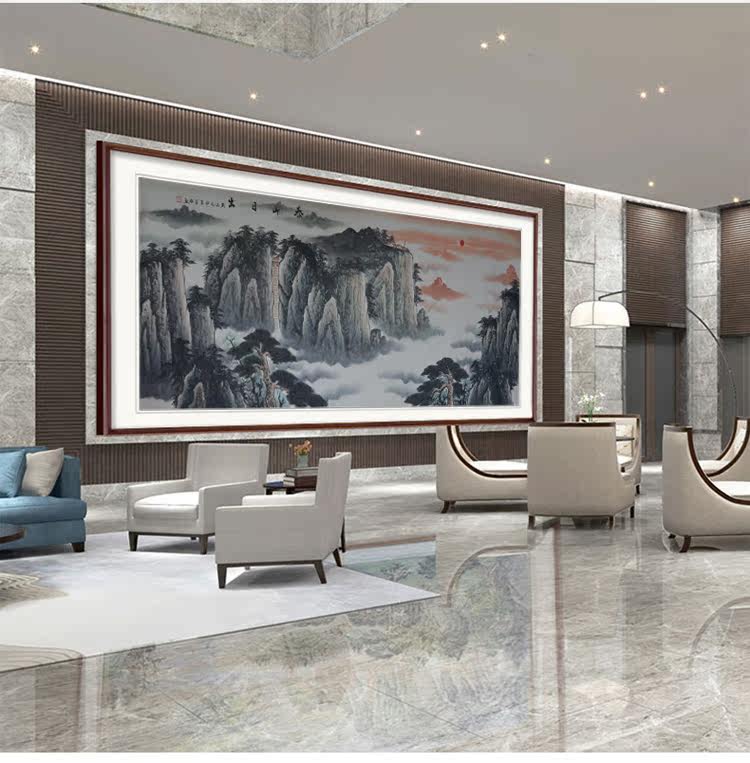 Chinese painting hand-painted authentic landscape painting living room hanging painting backing mountain decoration painting sofa painting lucky office hanging painting Mount Tai