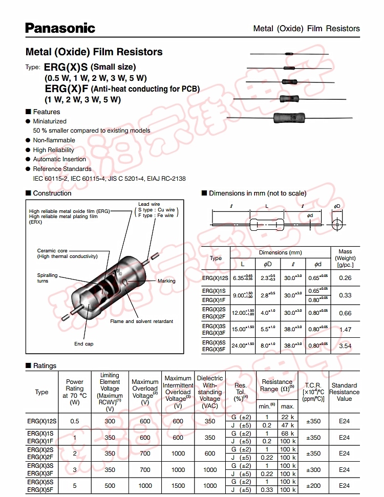 Imported Indonesia 0 47R 3W Panasonic ERX copper foot metal film resistor Panasonic 0 47 Ohms