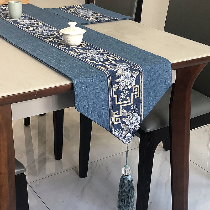 Chinese linen tea mat thickened embroidery tea mat placematte double double-sided table flag cotton linen tea curtain tea table cloth