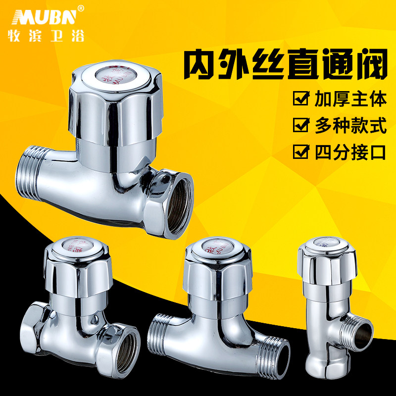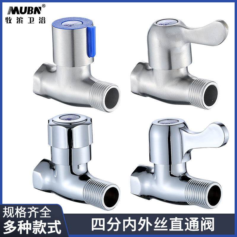 Full copper 4 min internal external tooth straight valve double external wire water corner valve bathroom water heater switch water stop water
