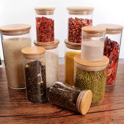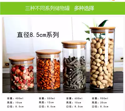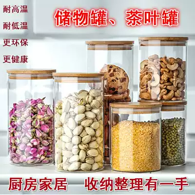 Glass tea cans, storage cans, sealed cans, bamboo caps, moisture-proof cans, cork storage bottles, dried fruit food storage cans