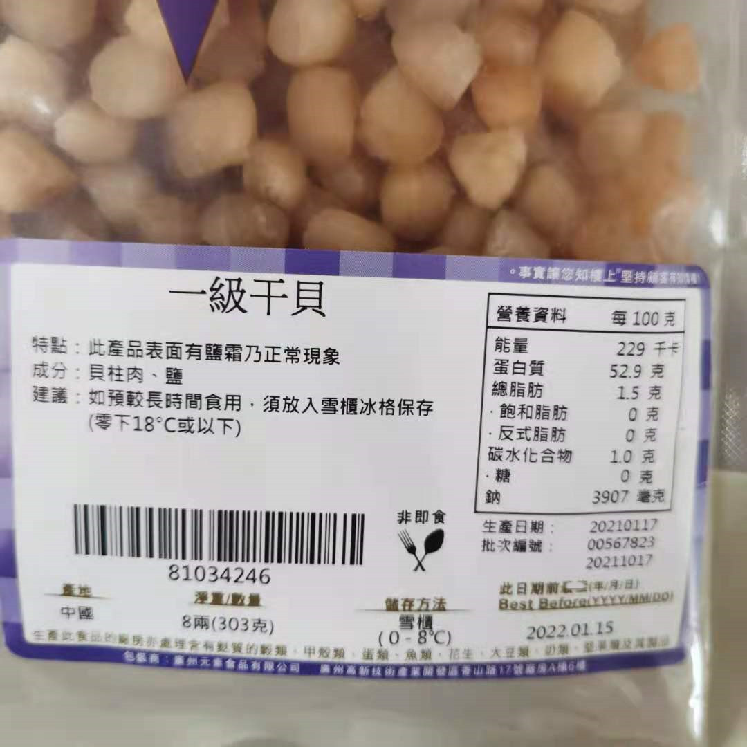 Hong Kong Upstairs Grade 1 dried scallops Selected dried scallops Selected dried scallops 303g 3 kinds of optional porridge and soup