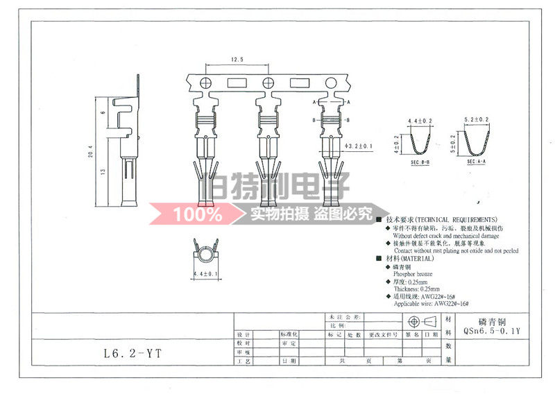 High quality L6 2-YT-PT connected terminal with 6 2mm pitch 1,500 units