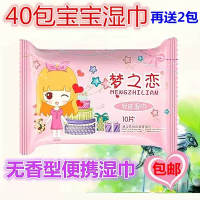 Baby wipes Children adult baby baby fragrance-free hand and mouth small packet wipes 10 pieces pack 40 Portable