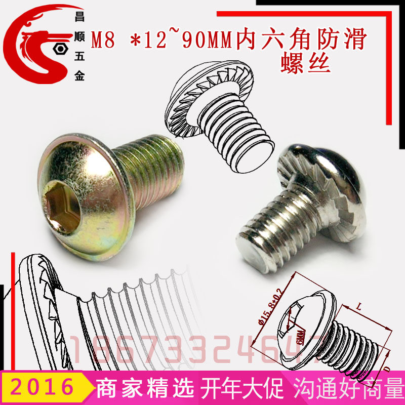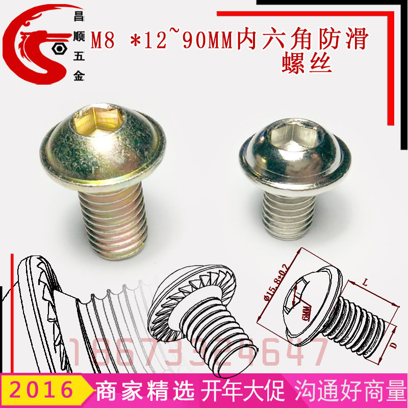 Semi-round head hexagon socket non-slip screw M8 semi-round head flange face screw M6 iron flat round head Anti-loose bolt
