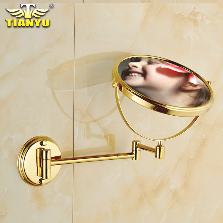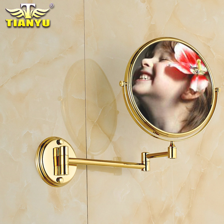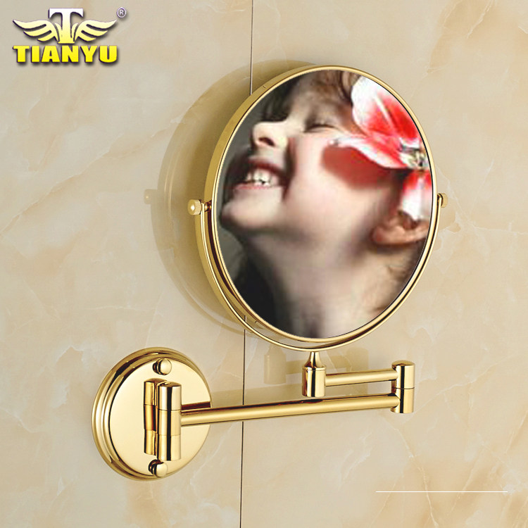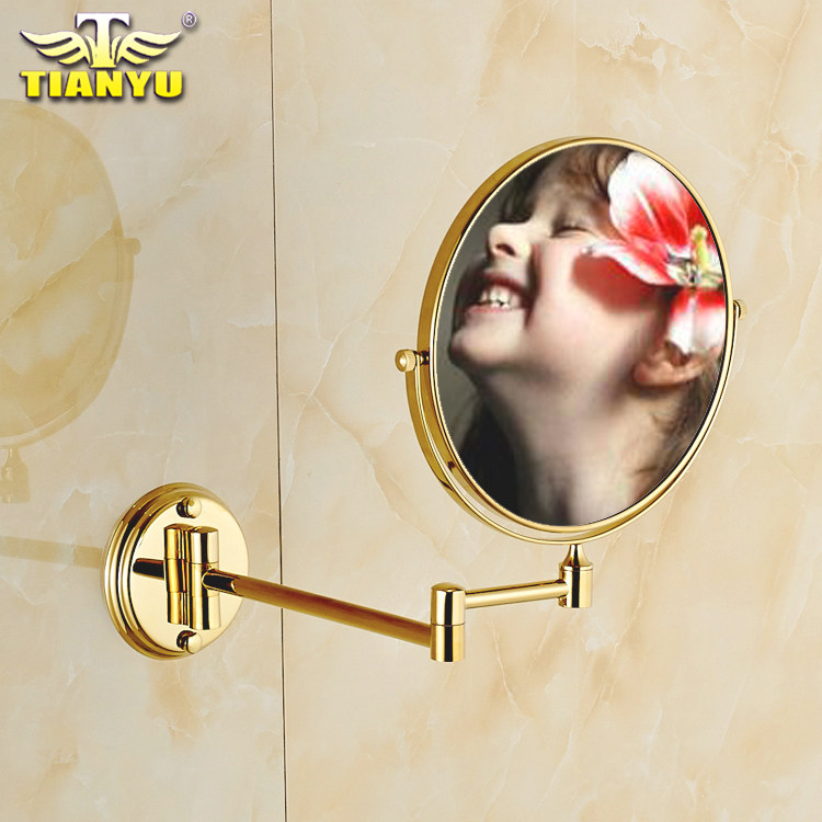 Free hole European gold beauty mirror Bathroom makeup mirror Wall-mounted copper bathroom makeup mirror Double-sided enlarged folding mirror