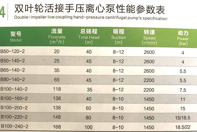 2 inch Flow 20 Head 402 inch Flow 25 Head 452.5 inch Flow 35 Head 403 inch Flow 65 Head 404 inch Flow 118 Head 354 inch Flow 138 Head 404 inch Flow 138 Head 604 inch Flow 148 Head 805 inch Flow 208 Head 60 m 6 inch Flow 260 Head 35 m 6 inch Flow 280 Head 45 m 2 inch Flow 40 Head 135 m 2.5 inch Flow 60 Head 125 m 3 inch Flow 90 Head 115 meters 4 inch flow 200 head 1603 inlet flow 80 head 1803 inch 29 B80-288-24 inch 29 B100-288-23 inch 19 double impeller hand pressure irrigation pump