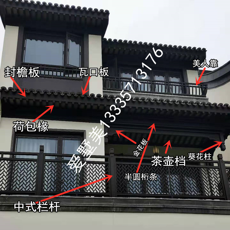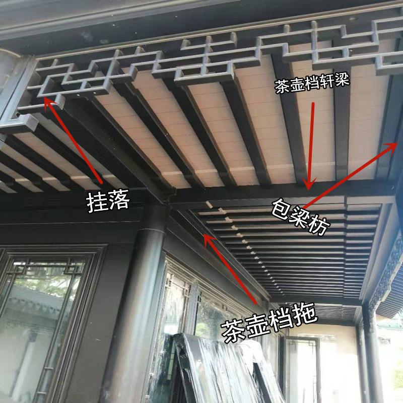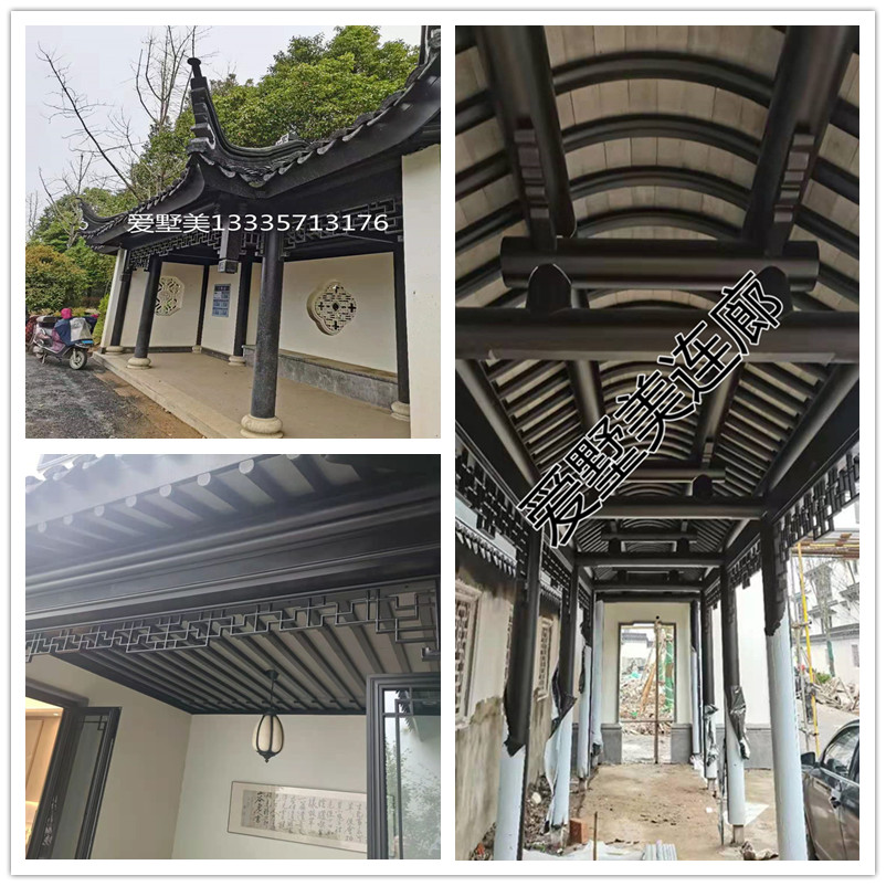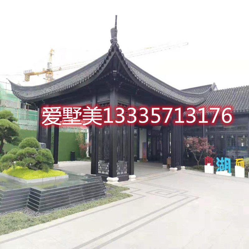 Ancient Chinese-style villa Antique aluminum components Aluminum substitute wood Aluminum alloy with cloister Beauty by railing hexagonal gazebo