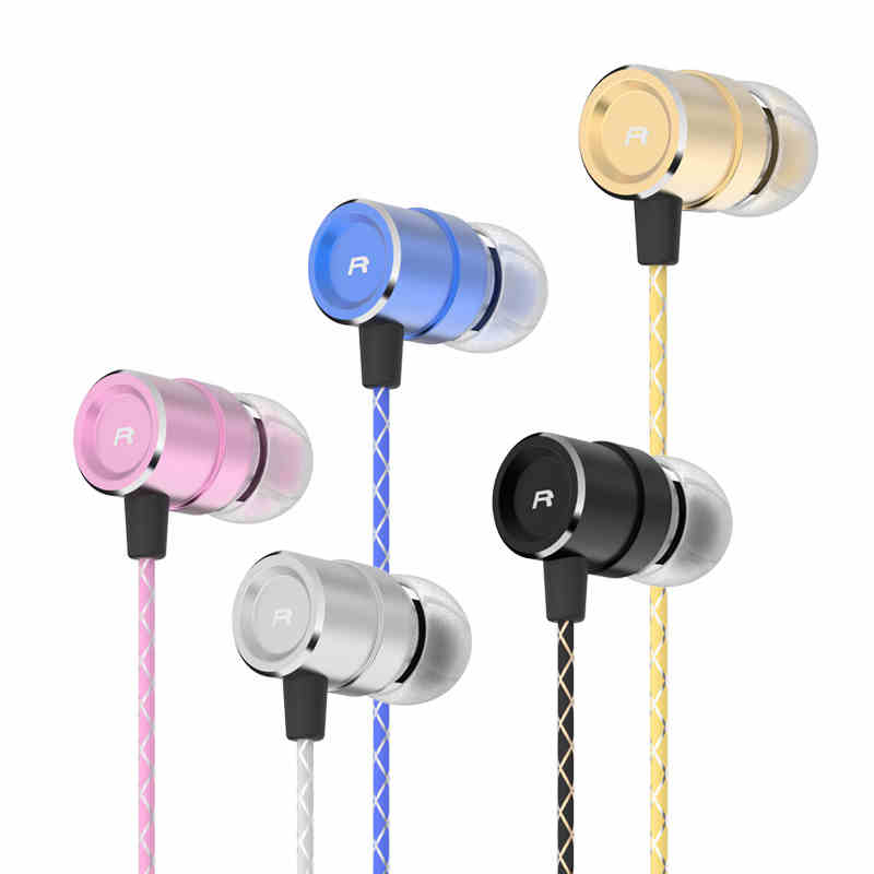 Mobile phone headphones In-ear Earplugs Metal Heavy Bass Eating Chicken Game Wire Control Computer Electric Race Headphones Ear Mai Generic