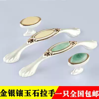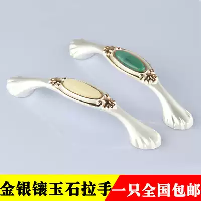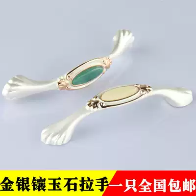 High-grade gold and silver inlaid jade handle modern simple European cabinet door handle TV cabinet wine cabinet whole cabinet wardrobe door handle