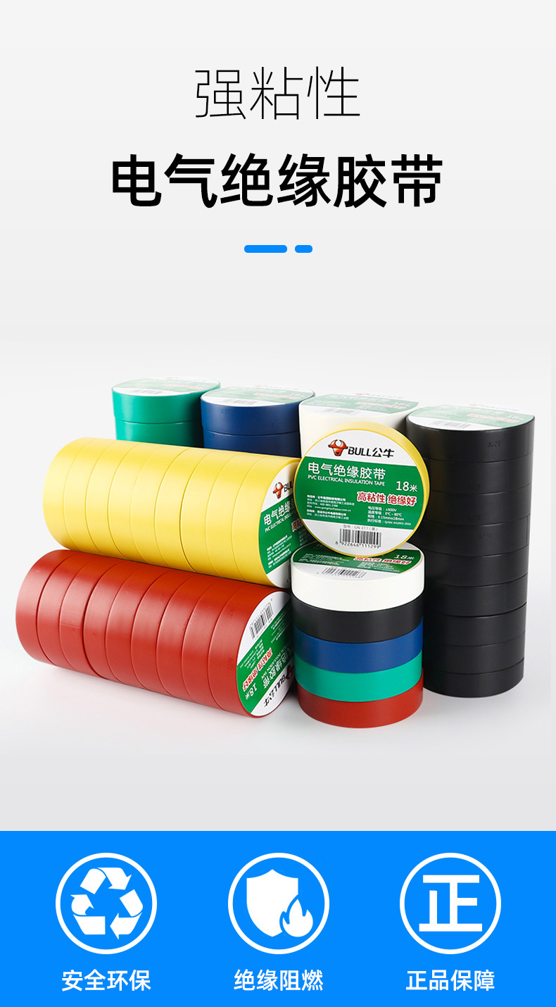 Bull PVC Electrical Insulation Adhesive Tape 18 m Waterproof High Temperature High Pressure Flame Retardant Electrician Wire Color Black Rubberized Fabric