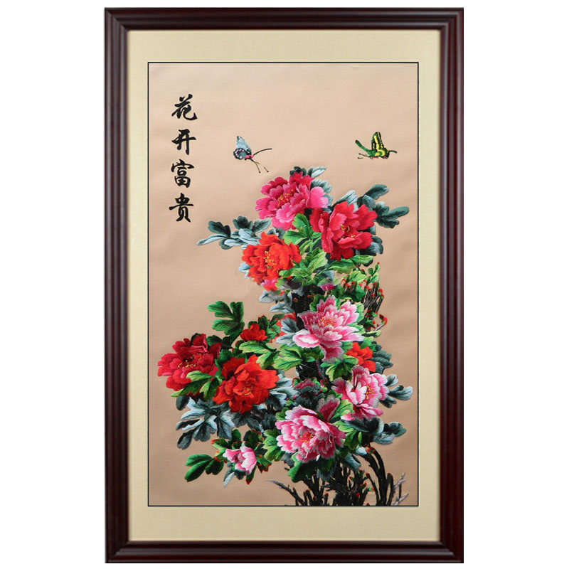 Su Embroidery Finished Silk Boutique Living Room Hanging Painting Vertical Vice Soft Peony Blossom Flower Precious Gift Embroidery Business Gift