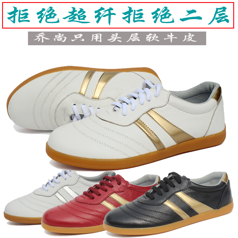 Joshan Tai Chi Shoes Woman Spring Autumn Genuine Leather Soft Bull Gluten Bottom Martial Arts Shoes Men's Breathable Taijiquan Kutian Shoes Sneakers