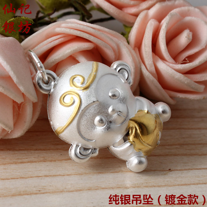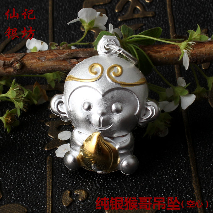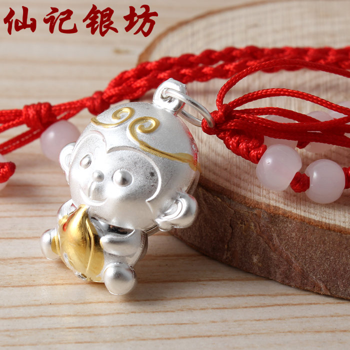Xianji Silver Square Foot Silver Monkey Year This Life Year Red String Zodiac Monkey Pendant Cute Necklace Jewelry Women's Accessories