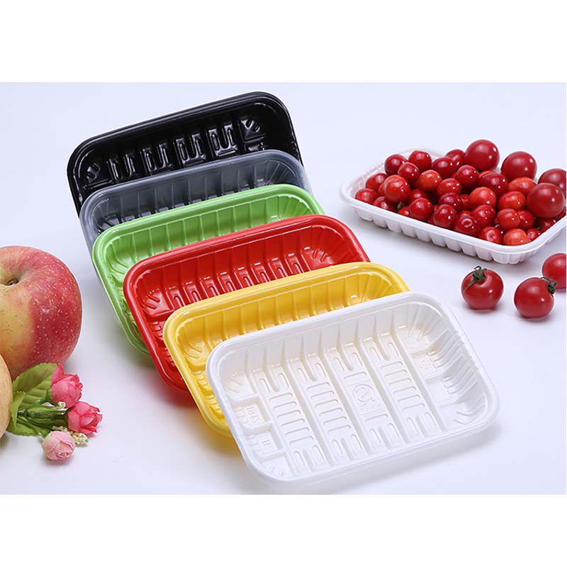 Supermarket disposable fresh tray packaging box Rectangular plastic fruit and vegetable seafood food white tray
