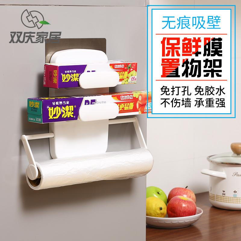 Creative suction plate shelf shelf shelf shelf kitchen with roll toilet shelf fridge side hanging wall-holding bag frame