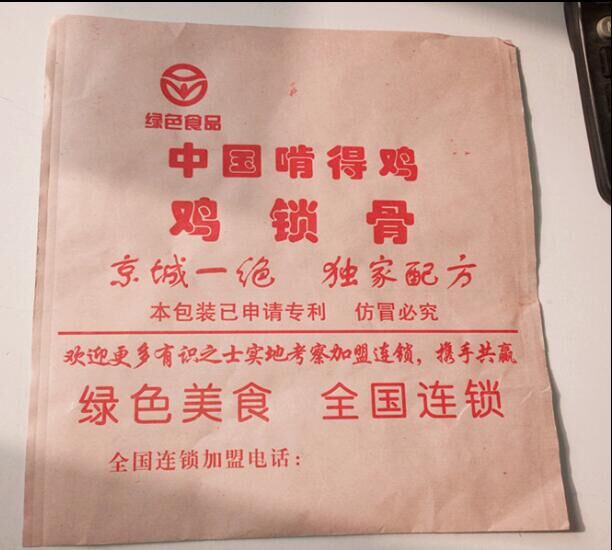 KFC flavor chicken wishbone greaseproof paper bag Fried chicken bag Chicken chops bag spicy wing bag Chicken clavicle bag