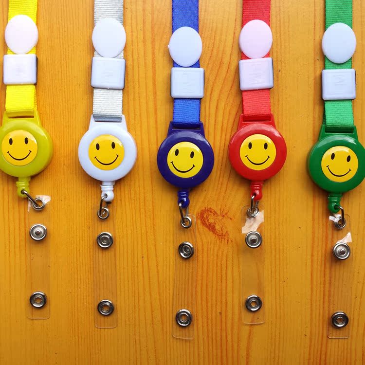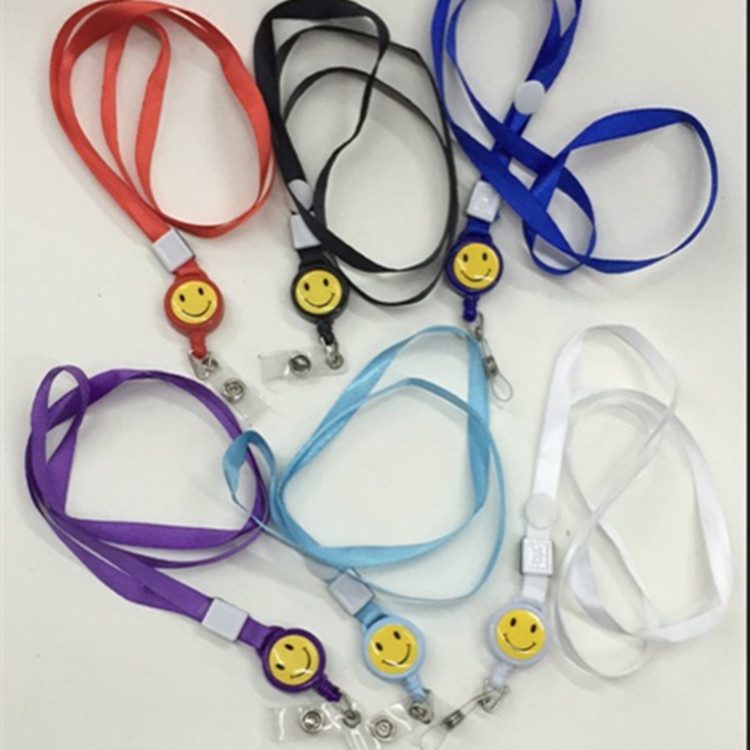 Wholesale smiley face easy pull buckle ribbon lanyard work permit lanyard card lanyard chest card lanyard factory brand lanyard