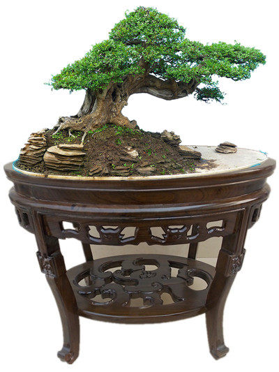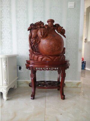 Solid Wood Bonsai Table Elm Wood Oval Bonsai Table Round Living Room Oval Solid Wood Fish Tank Shelf Flower Shelf Semi-circle Table